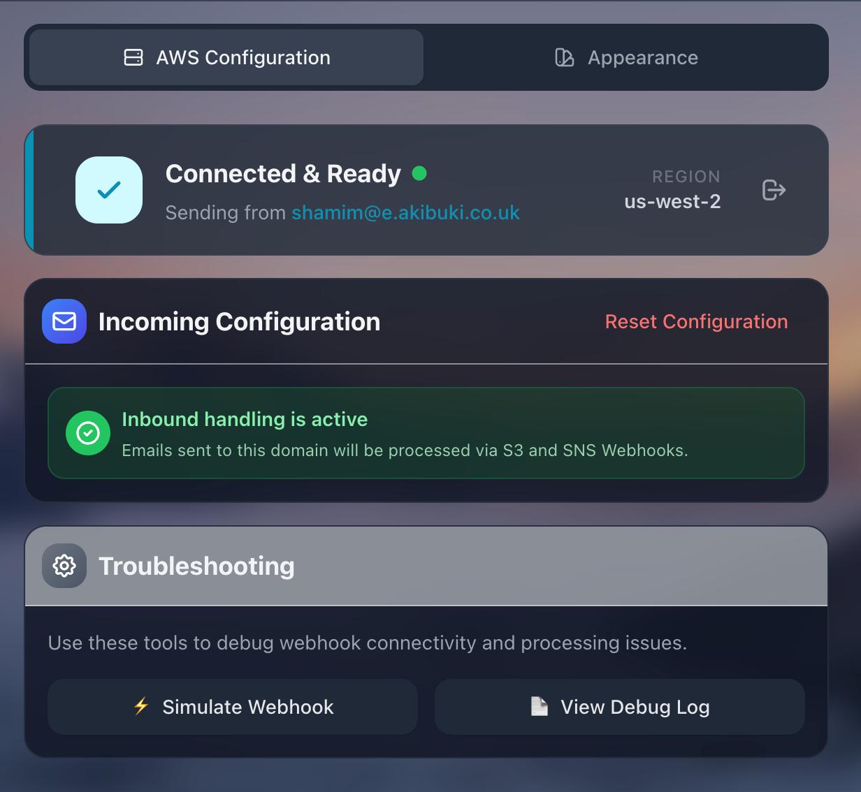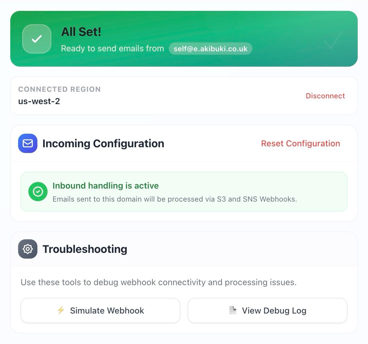 Reliable email delivery and receiving powered by AWS SES for speed, scale, and security.